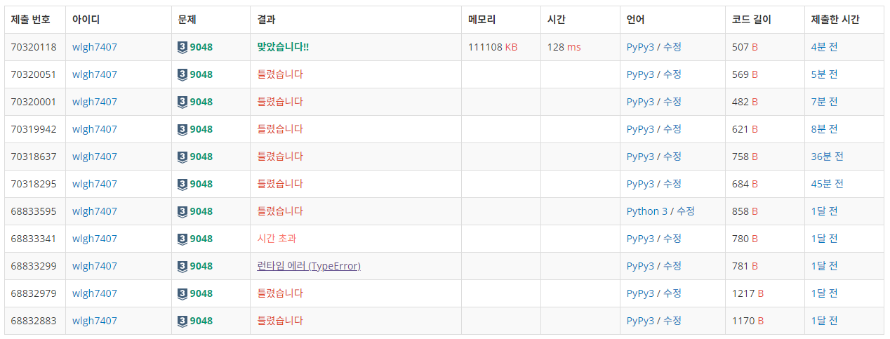 | [백준][14939][Python 파이썬][P4] 불 끄기 (0) | 2023.12.13 |