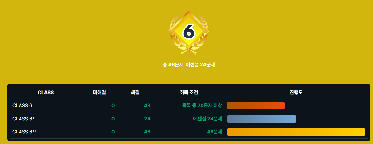 이로써 Class 6까지 완료했다!