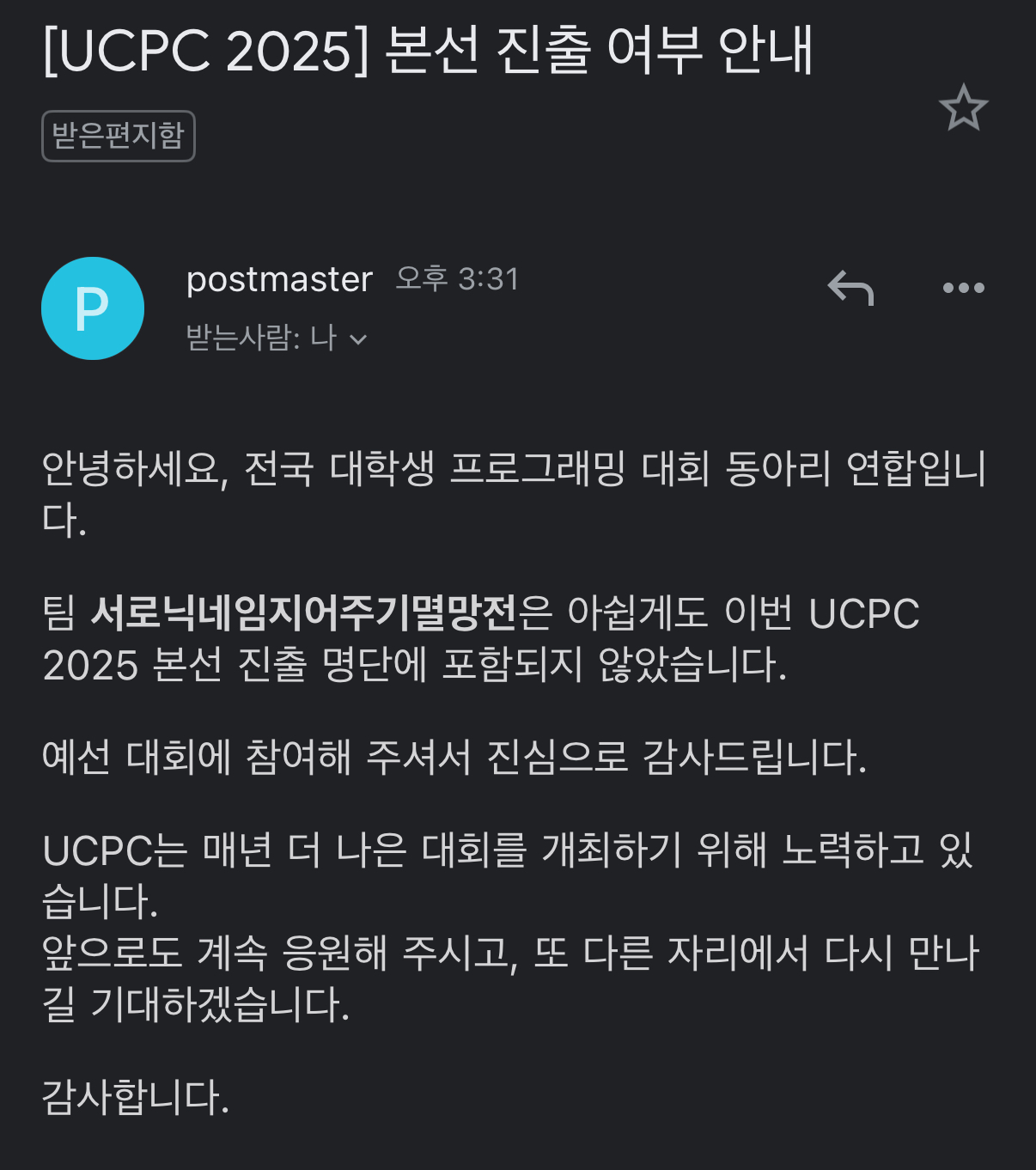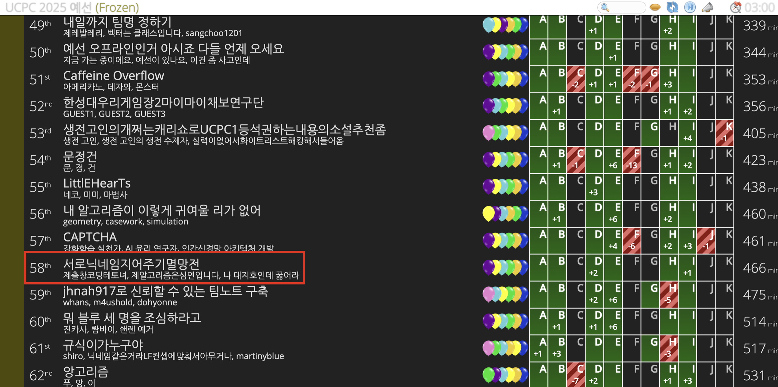 어차피 1학기를 마지막으로 수료하기도 하고, Eligibility도 안맞아서 2025년은 PS접고 대회 안나가려고 하고 있었는데...