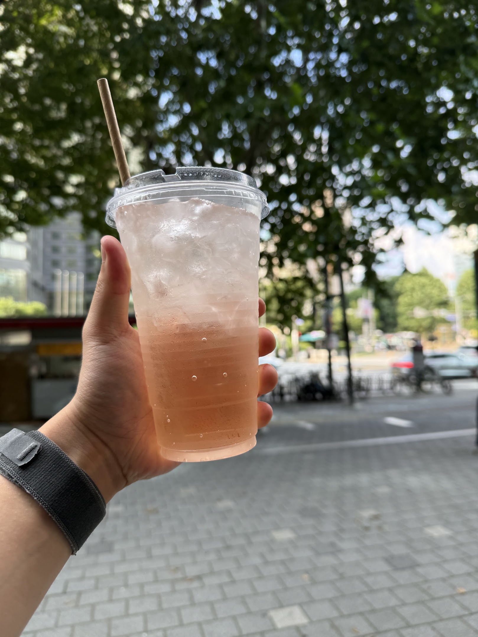새로 살구를 얼음컵 라지에 담으면 정확하게 딱 들어간다. 남들이 보기에 술같이 안보여서 더 좋다.