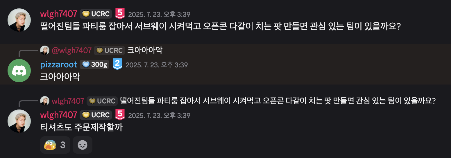 멘탈이 나가서 이런거까지 모집했지만... 현실적으로 어려워서 팀원들끼리 만나서 오픈콘이라도 치기로 결정했다.